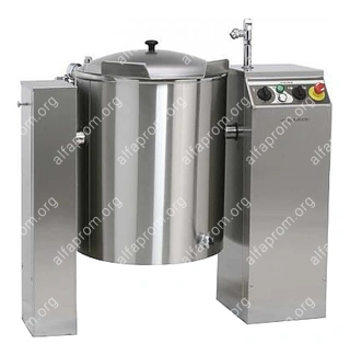 Паровая рубашка. Электрический привод наклона котла. Возможность установки нескольких котлов в одну линию без использования промежуточных опор. Плавная регулировка температуры. Максимальная температура +120 °C. Максимальное рабочее давление в паровой рубашке 1,0 бар.