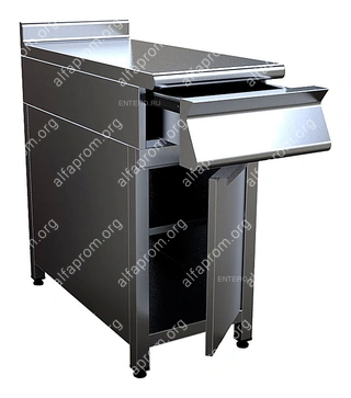 Закрытый нейтральный модуль Кобор N9-5EB предназначен для использования в составе тепловой линии в качестве дополнительного места для раскатки теста, обработки ингредиентов для приготовления блюд, установки оборудования и приборов. Модуль оснащен выдвижным ящиком, сплошной полкой, распашной дверцей и регулируемыми по высоте ножками. Корпус выполнен из нержавеющей стали AISI 430, каркас - из профильной трубы 40х40 мм.