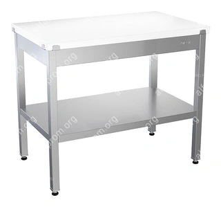 Производственный стол ATESY СРП-Л-1000.600-02 серии Люкс используется на предприятиях общественного питания и торговли для разделывания и обработки пищевых продуктов, а также в качестве вспомогательной поверхности для кухонного оборудования. Столешница выполнена из полипропилена толщиной 30 мм, полка - из нержавеющей стали AISI 304, стойки - из трубы 40х40 мм из нержавеющей стали AISI 304.