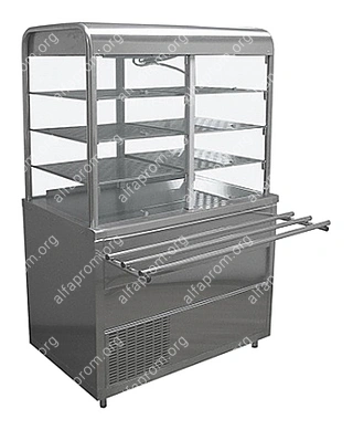 Холодильная витрина Пищевые Технологии Лира-Профи Эко СОЭП-В/ЛПЭ-1500 предназначена для кратковременного хранения и демонстрации холодных закусок, салатов, охлажденных напитков в составе линий раздач или самостоятельно на предприятиях общественного питания и торговли. Модель оснащена воздухоохладителем, поддоном для сбора воды, нишей для хранения инвентаря, направляющими для подносов и регулируемыми по высоте ножками. Корпус выполнен из окрашенной оцинкованной стали.