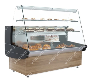 Кондитерская витрина Carboma K85 SM 1,5-1 (ВХСд-1,5 ЭКО (Паттерн)) предназначена для демонстрации, охлаждения и кратковременного кондитерских изделий, десертов и сэндвичей на предприятиях общественного питания и торговли. Модель оснащена микропроцессорным блоком управления с индикатором температуры, 2 полками, ночными шторками из органического стекла и регулируемыми ножками высотой от 20 до 35 м. Зона выкладки и столешница выполнены из стали серого цвета, боковины - из коричневого, серого или черного пластика, нижняя панель - из паттерна ольхи.